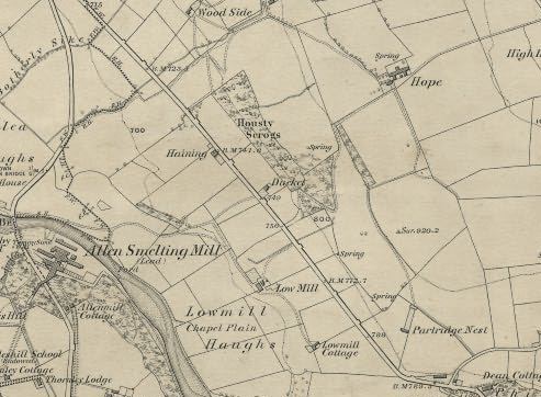 The 'New Line' (Station Road) was constructed in the 1840's. The locally-used name comes from the 1844/45 minute book of meetings of 'Trustees of the Allendale Turnpike Road', which refers to inspecting 'the intended new line from Smeathlands near Catton to Allendale Town'.